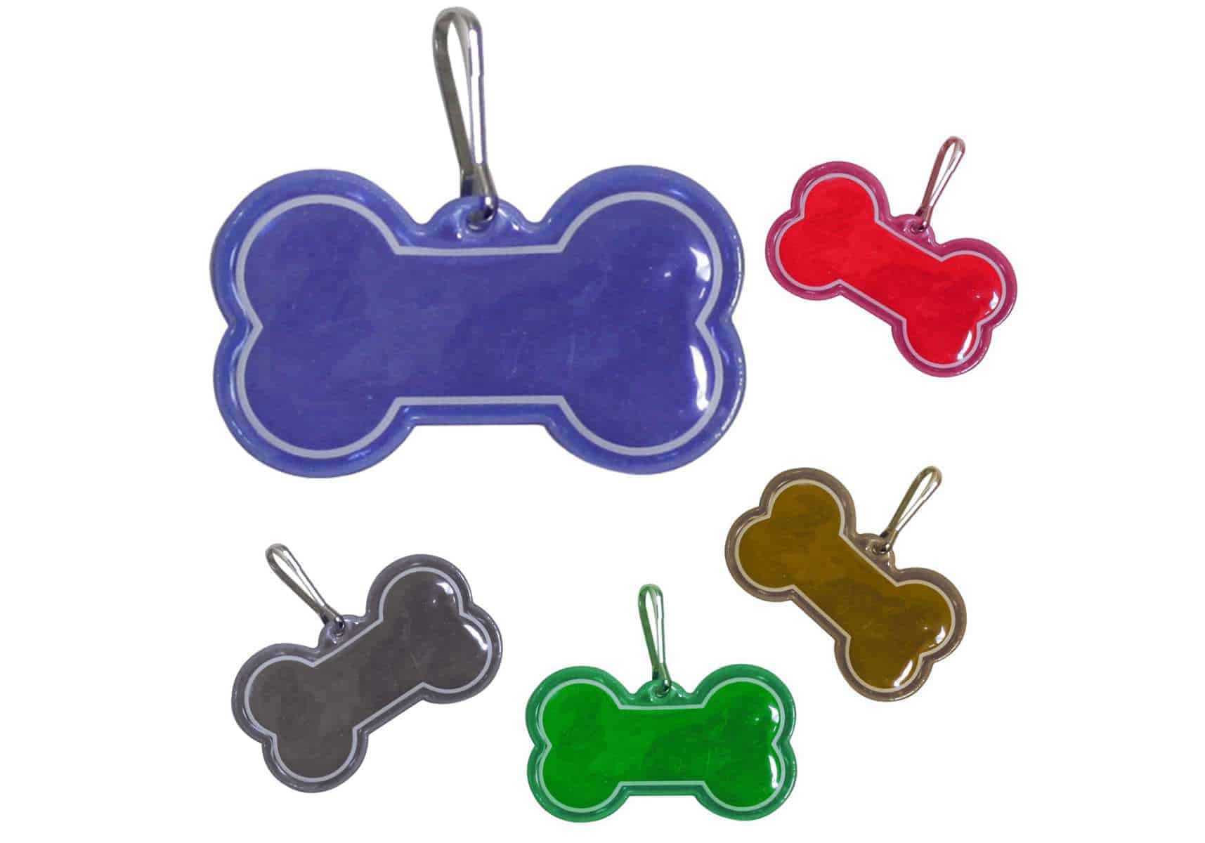 Product Description: These dog bone shaped reflective collar tags are made of soft padded plastic.