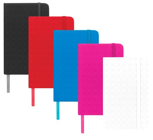 Pocket notebook with matching colour elastic closure and ribbon. Available in 5 colours