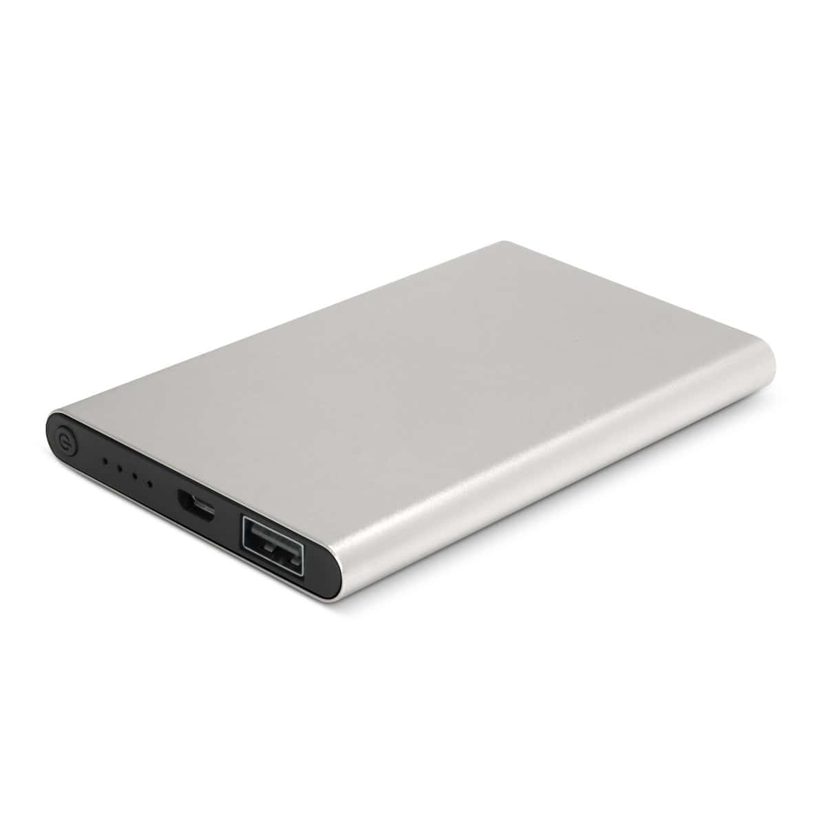 Product Description: Thin 4000mAh power bank with a power gauge and a smart aluminium finish. The input power is 5V/1 Amp and the output power is 5V/1 Amp. It can be recharged in 5-6 hours from a USB port or a mains adapter. Comprehensive instructions and a Micro-B USB cable are included. An optional EVA carry case and a triple connector cable are available on request. Zion laser engraves to an oxidised white colour.